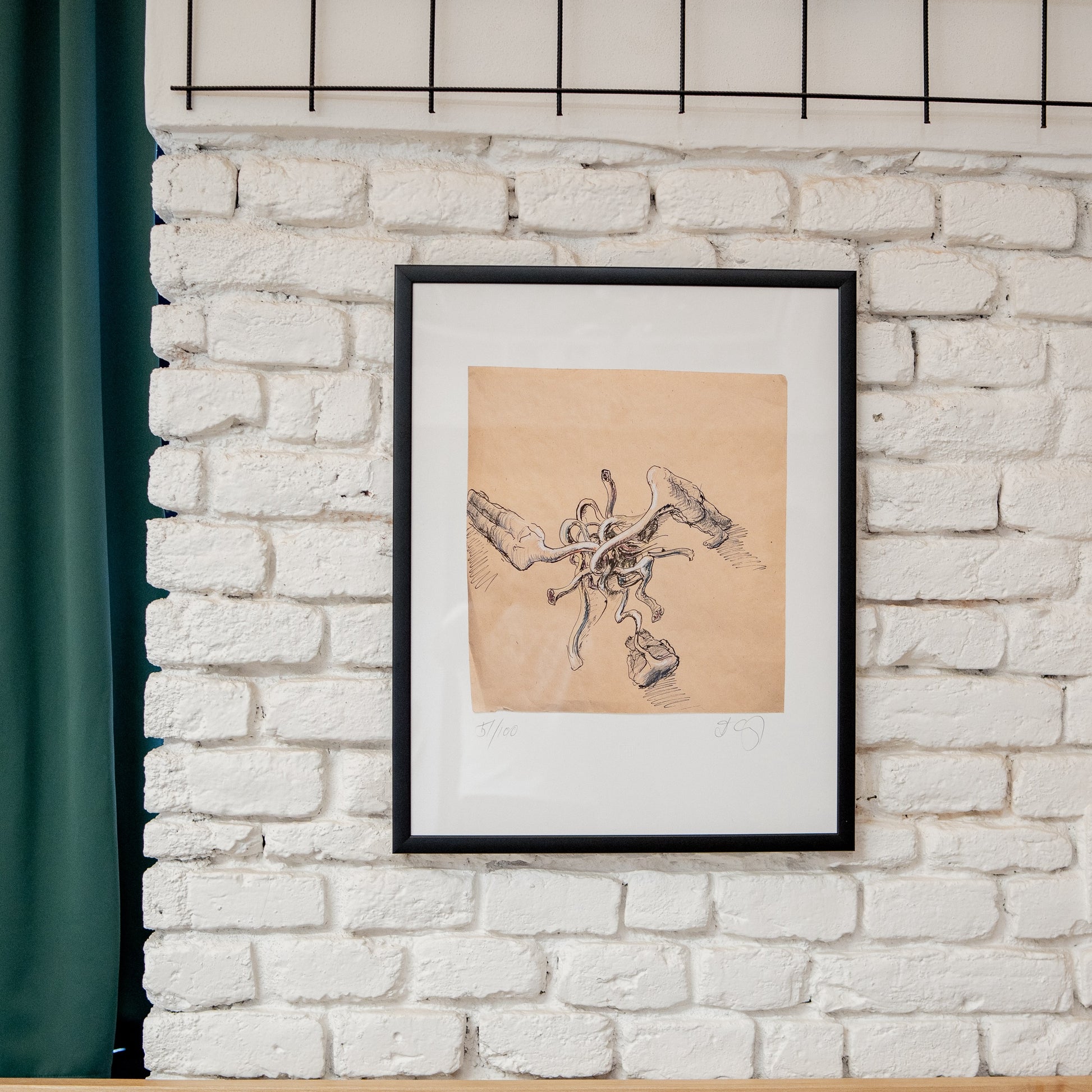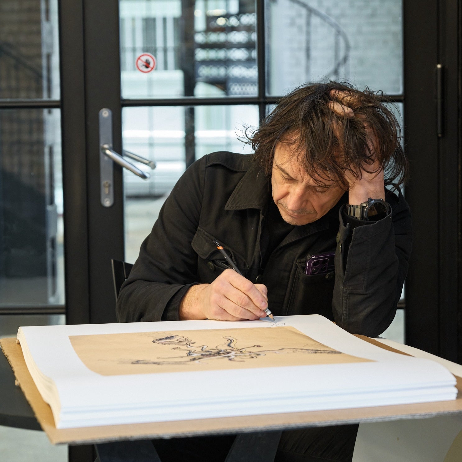 David Černý, ikona českého současného umění, a kresba z 90. let, která předznamenává jeho fascinaci pohybem a mechanikou známou z pozdějších soch. Limitovaná edice 100ks, číslováno, podepsáno autorem.