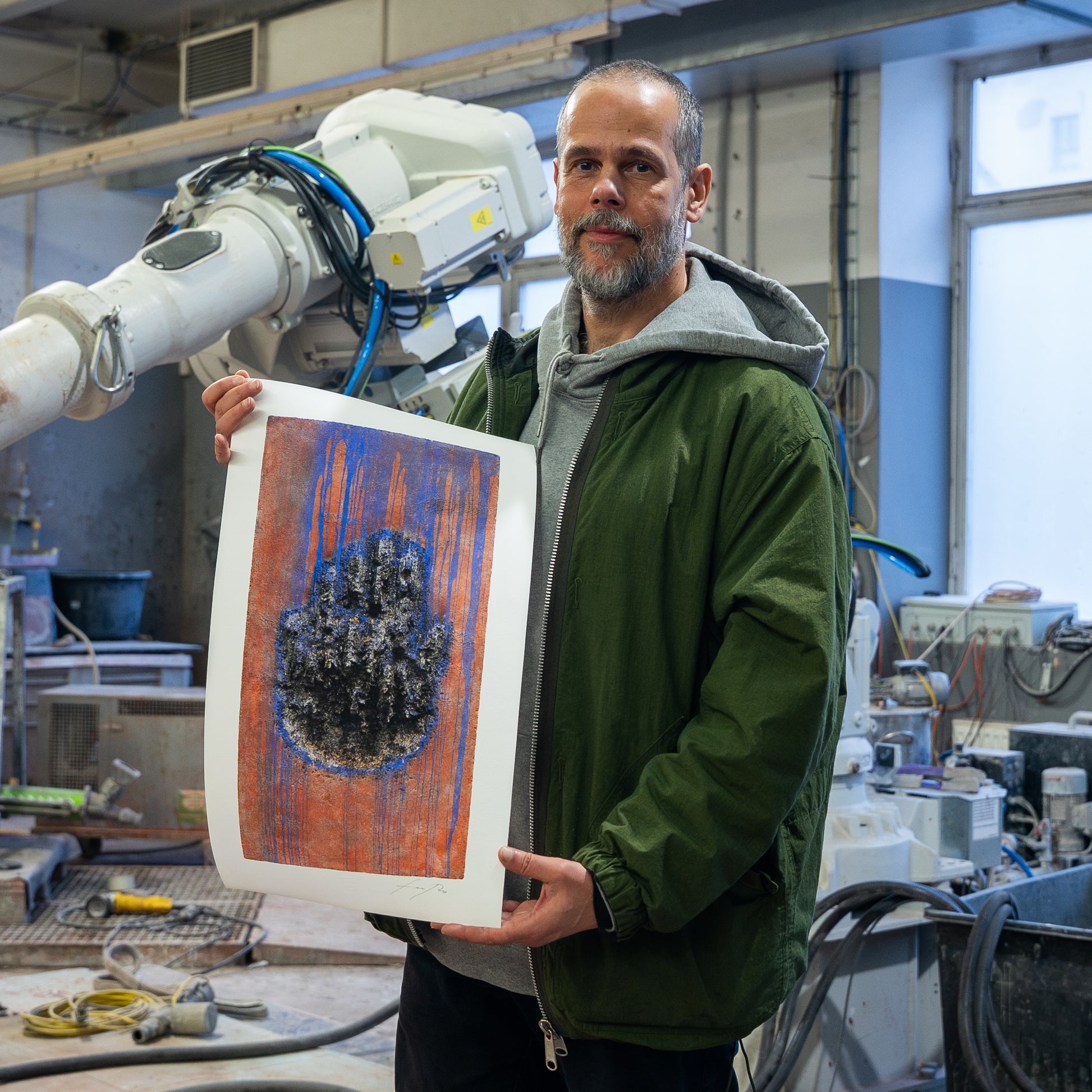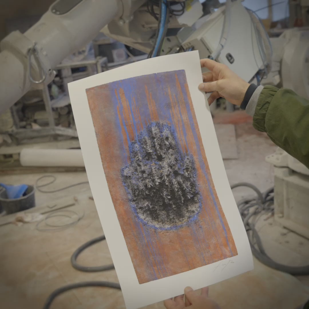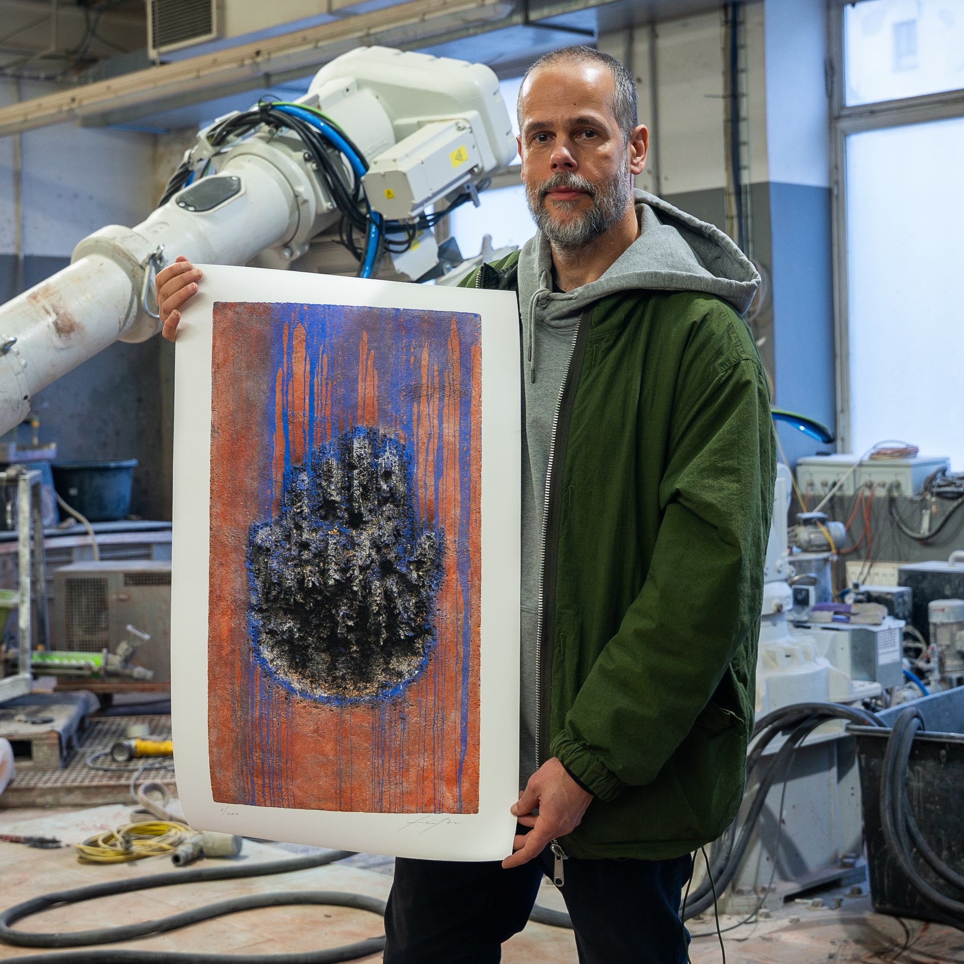 Mezinárodně oceňovaný autor pracující s technologií a materiálem, který zde vytváří reliéf připomínající silný otisk ruky i stopu energie. Limitovaná edice 100ks, číslováno, podepsáno autorem.