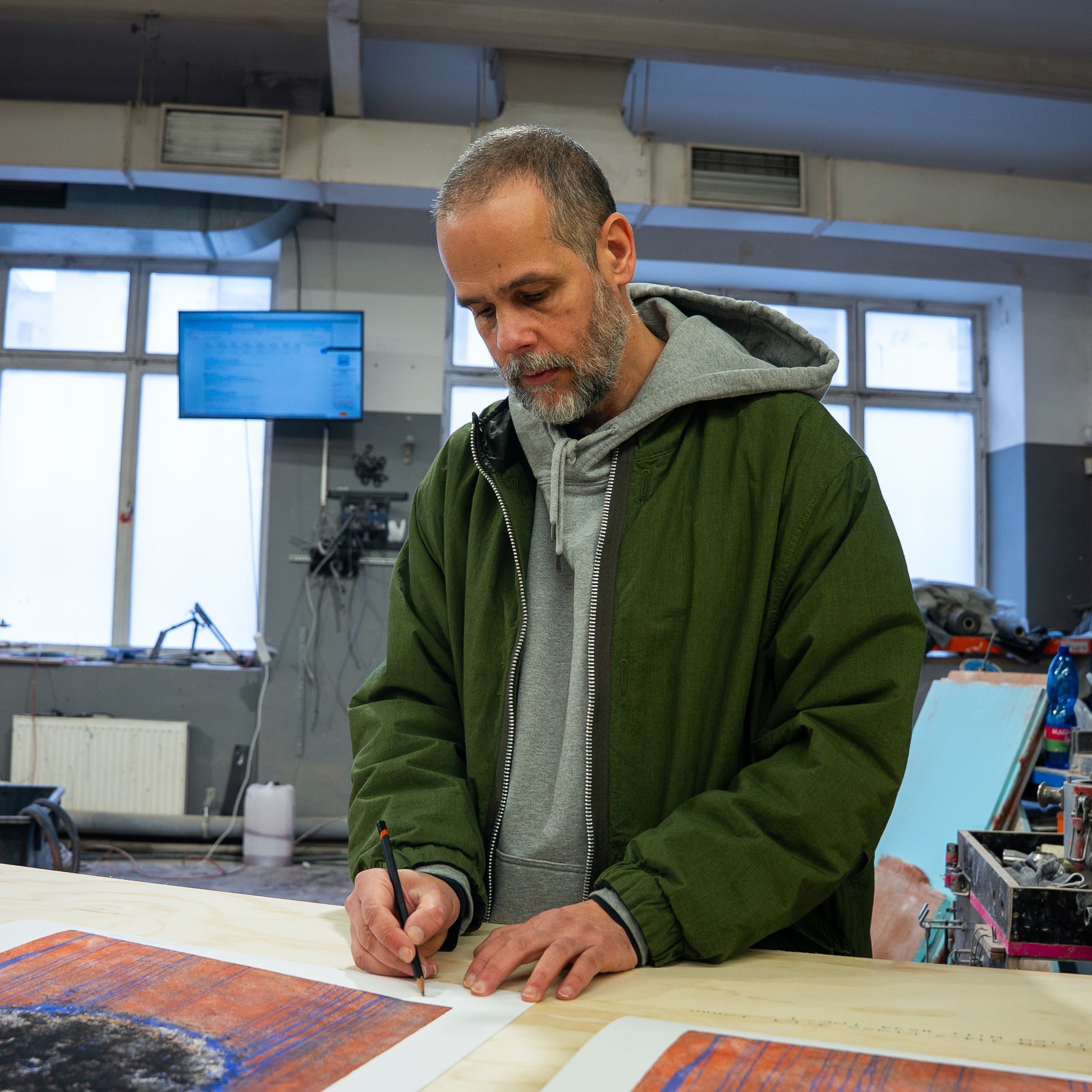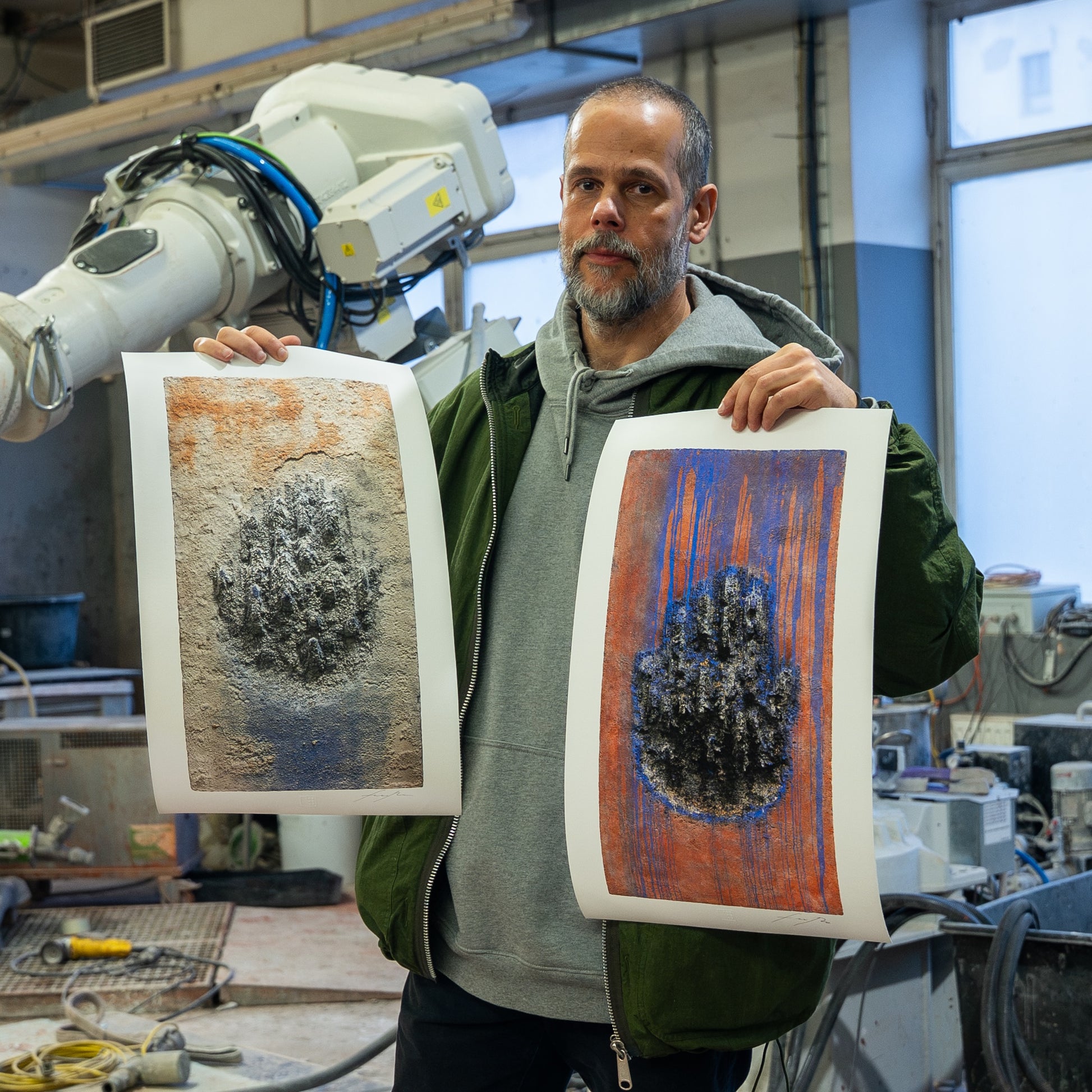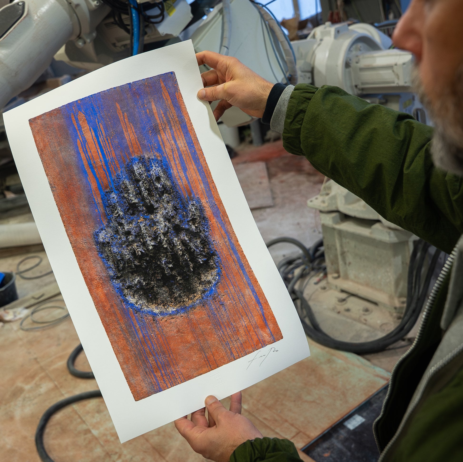 Mezinárodně oceňovaný autor pracující s technologií a materiálem, který zde vytváří reliéf připomínající silný otisk ruky i stopu energie. Limitovaná edice 100ks, číslováno, podepsáno autorem.