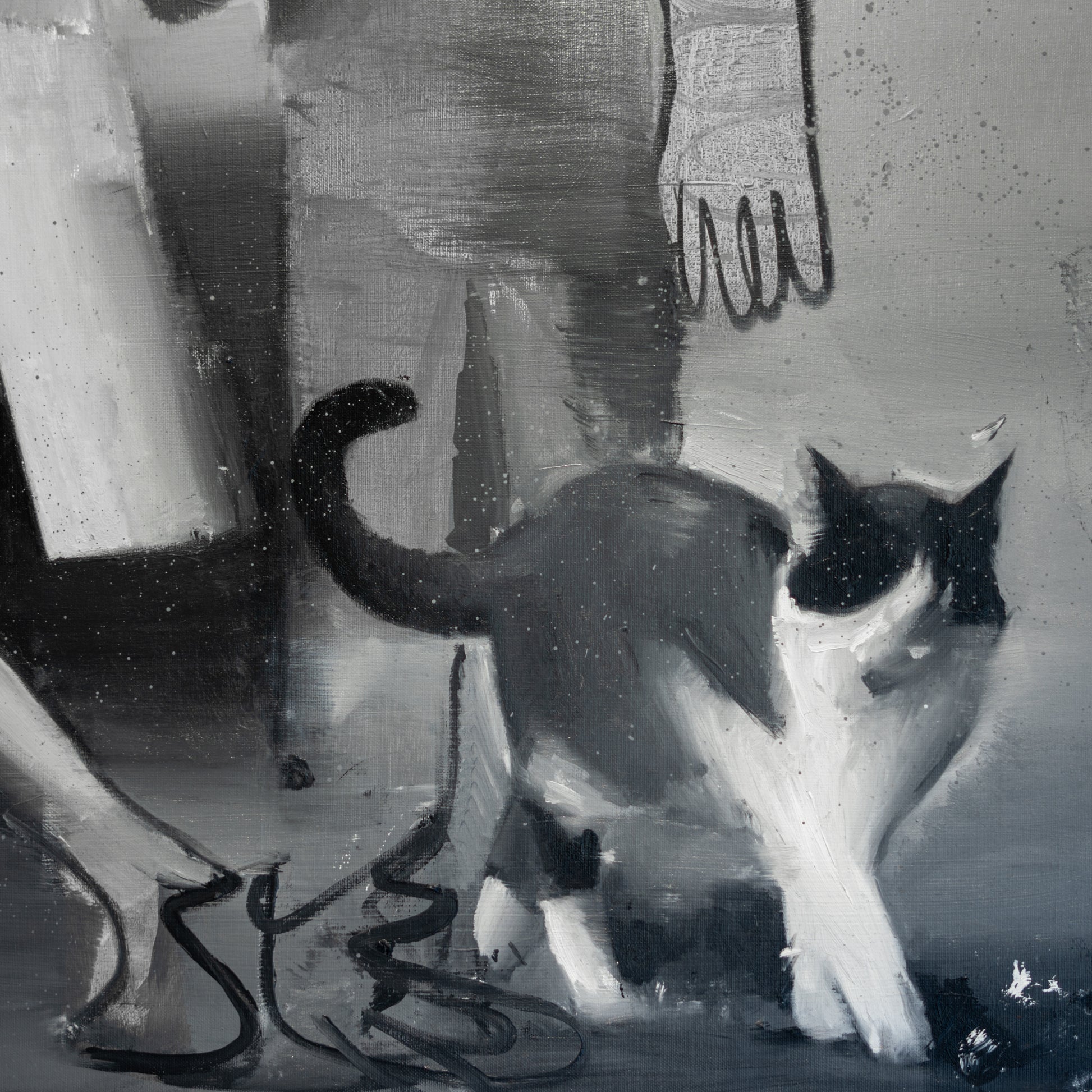 Obraz vznikal v posledním období jako volné pokračování autorovy předchozí tvorby a představuje osobní průzkum malby na pomezí racionální konstrukce a intuitivního gesta. Fragmentární, kolážově stavěné kompozice vytvářejí prostor, kde se prolíná realita s abstrakcí a kresba s malbou jako rovnocenné výrazové prostředky. Převážně černobílá škála odkazuje k vizuální paměti starších médií a animace, kterou autor kombinuje s modernistickými principy a osobními i kulturními zdroji od rodinných archivů po digitální obrazový svět. Výsledkem je práce s pamětí a návratem, která není nostalgická, ale spíše analytická a současná.
