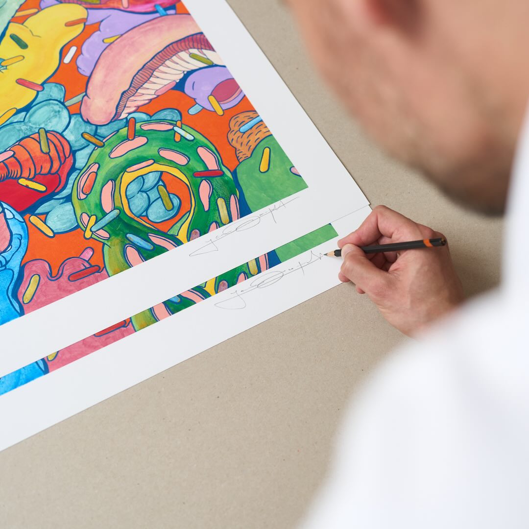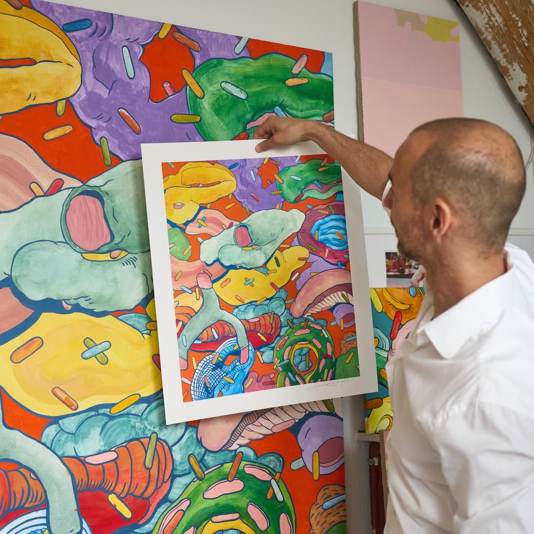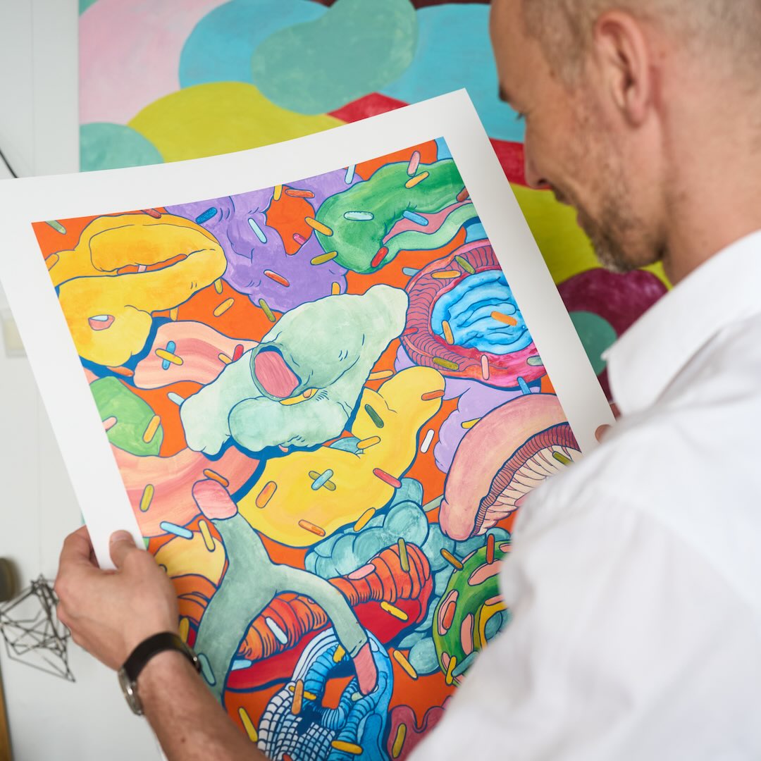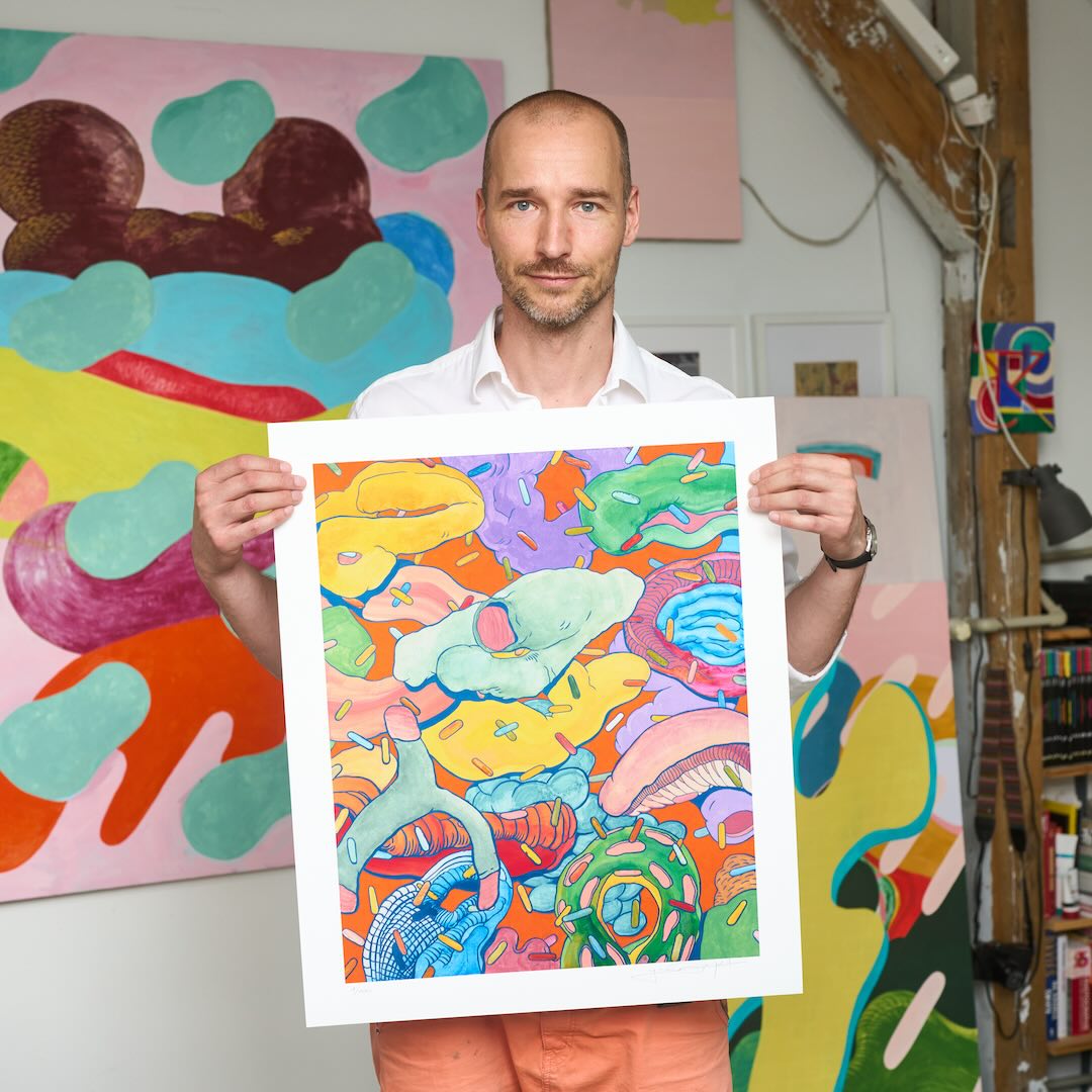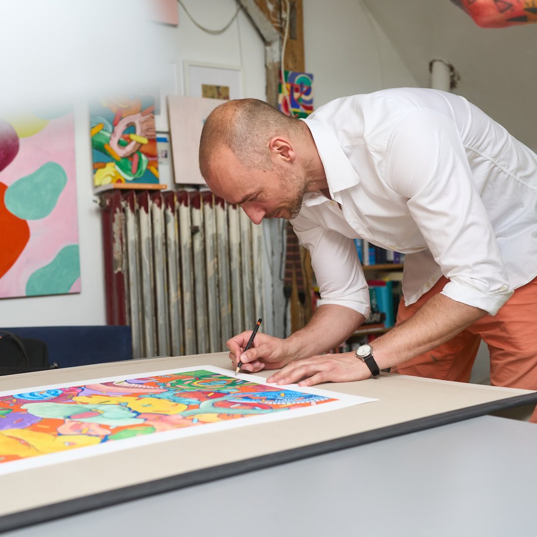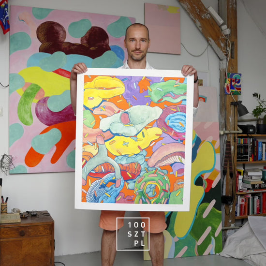 Oceňovaný a uznávaný malíř a graffiti umělec a jeho abstraktní malířská kompozice oslavující nově objevené štěstí a radost umělce. Jejím úkolem je jednoduše být v prostoru a pozitivně působit barvou a kompozicí na diváky. Limitovaná edice 100ks, číslováno, podepsáno autorem.