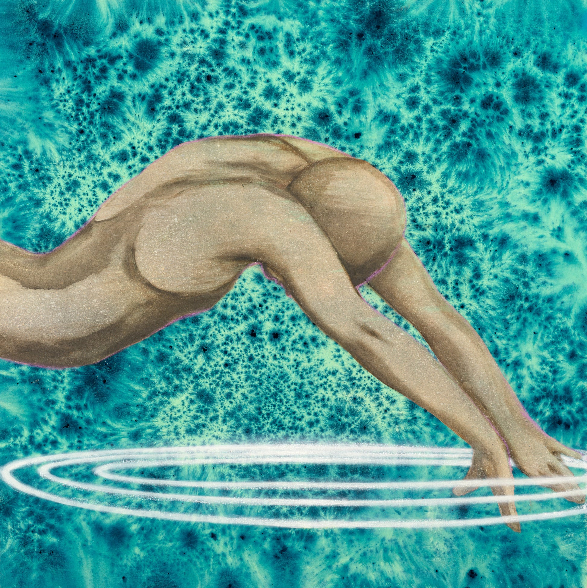Kristína Mésároš patří k nejvýraznějším slovenským malířkám své generace, známá pro práci s figurou v přechodových a snově působících prostředích. „Vlnenie“ rozvíjí téma průchodu a proměny, přičemž akcentuje napětí mezi stabilitou těla a živou, organickou strukturou pozadí.