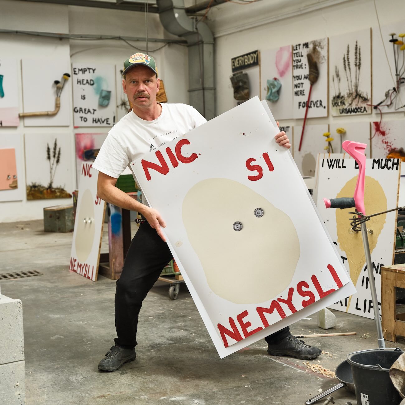 Krištof Kintera (*1973) patří k nejvýraznějším osobnostem současného českého umění. Vystudoval Akademii výtvarných umění v Praze, kde prošel ateliéry Jiřího Lindovského, Aleše Veselého, Michaela Bielického i Milana Knížáka, a následně absolvoval prestižní Rijksakademie v Amsterdamu.