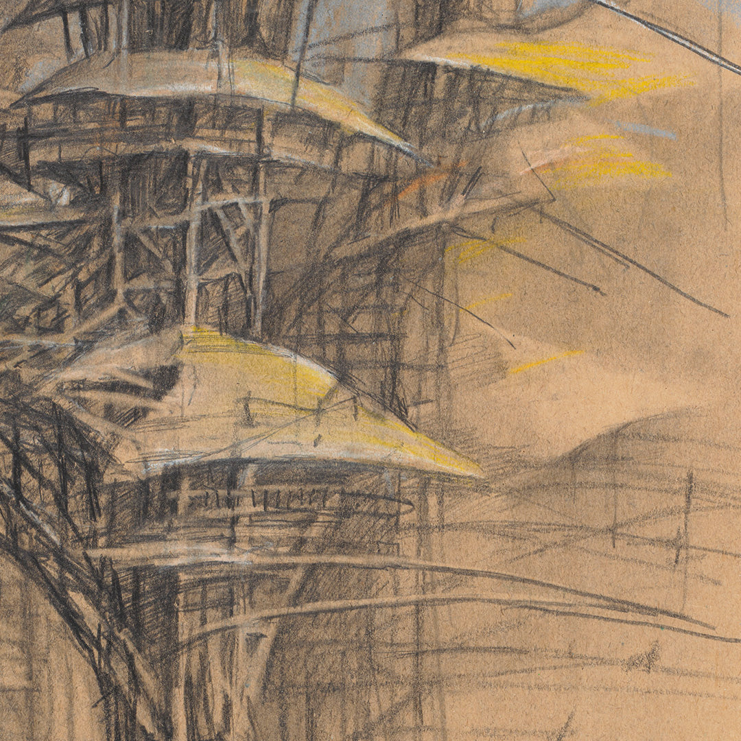 Dílo vybrané pro 100ks je jedinečnou kresbou, která zachycuje právě atmosféru Neprašova stromového paláce, ale posouvá ji dál takřka do sci-fi rovin. Hnízda na kůlech spojená ve stavbu, která je sama o sobě tak trochu živoucím organismem, zosobňují Jakubovy sny o návratu k čistším formám života s komunitními a symbiotickými aspekty, kdy je technologie spíš služebníkem, než vůdcem.