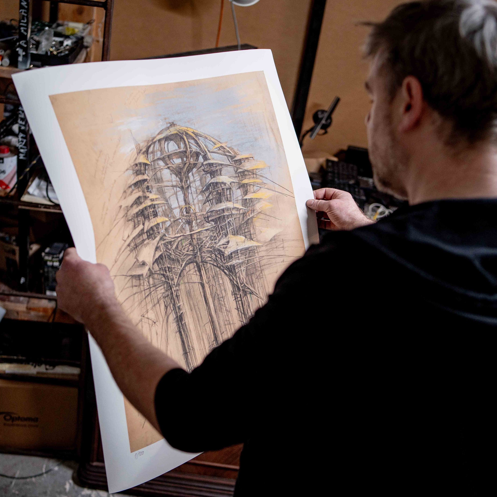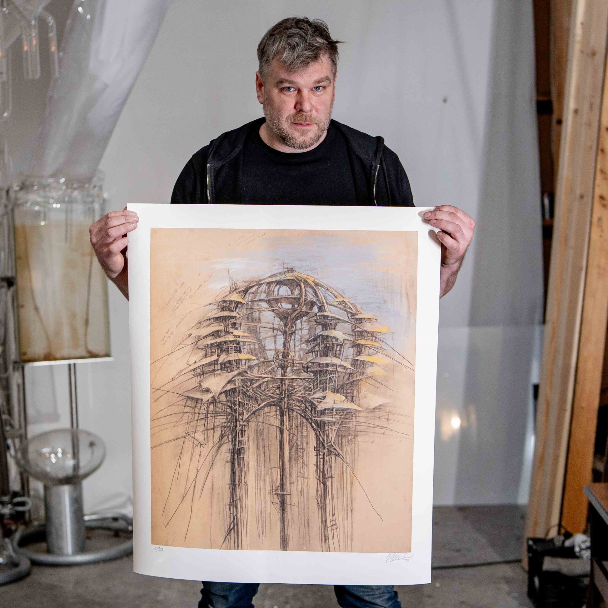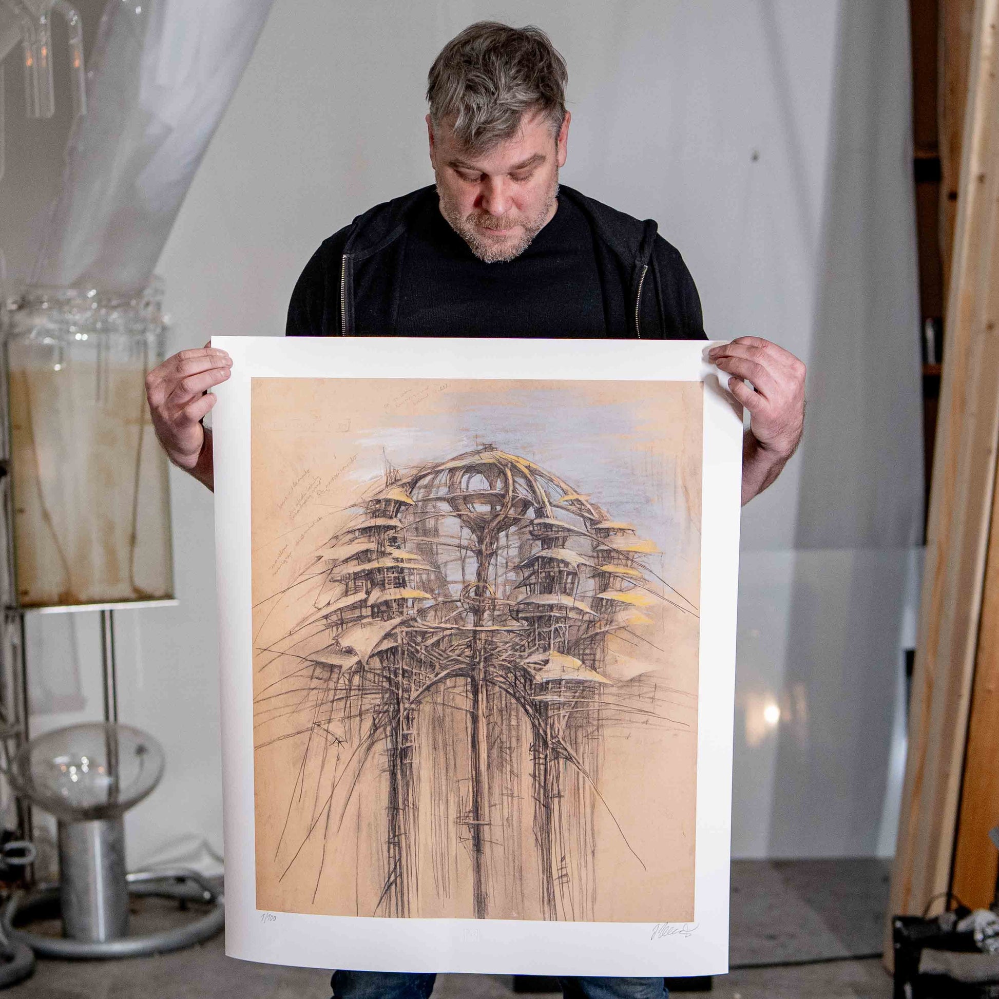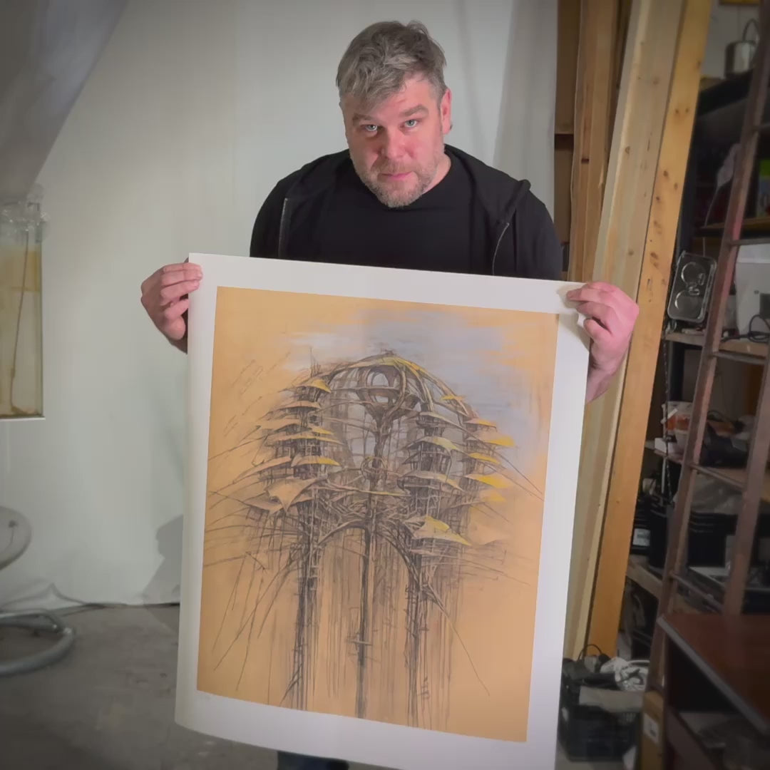 Jeden z nejvýraznějších českých intermediálních umělců současnosti. Organická architektura stromového paláce posunutá do sci-fi rovin. Limitovaná edice 100ks, číslováno, podepsáno autorem.