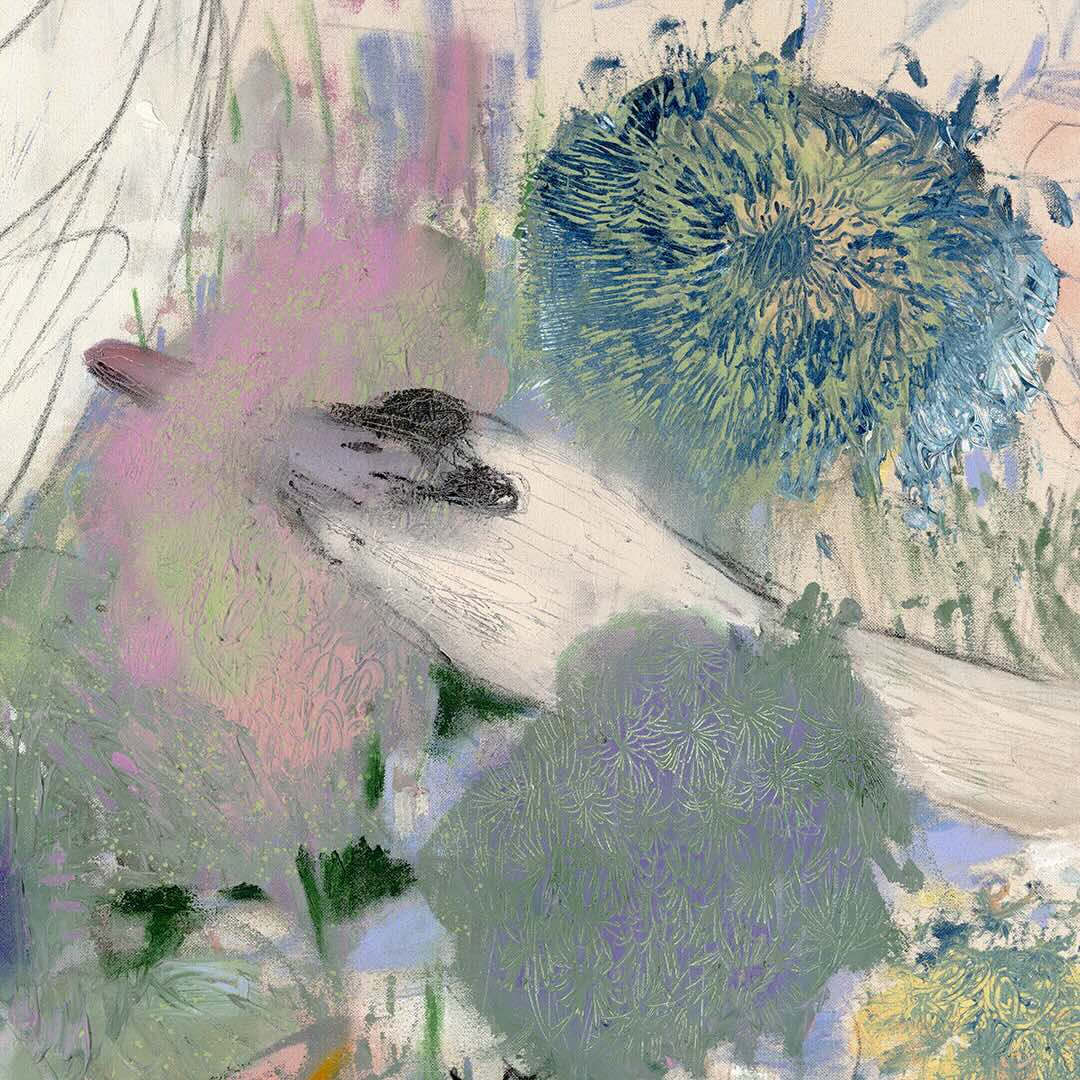 I named Rest, a rest, because it should evoke a sense of time or the present moment in the viewer. The symbols I painted there remind me of the present moment. For me, it is about adolescence, meeting, relaxing, when people meet throughout the day, and maybe they just lie down on the grass, and they are and enjoy the moment. The swan is then a memory of childhood. Thanks to that I can stop and say that this was the moment I had the time to fully.