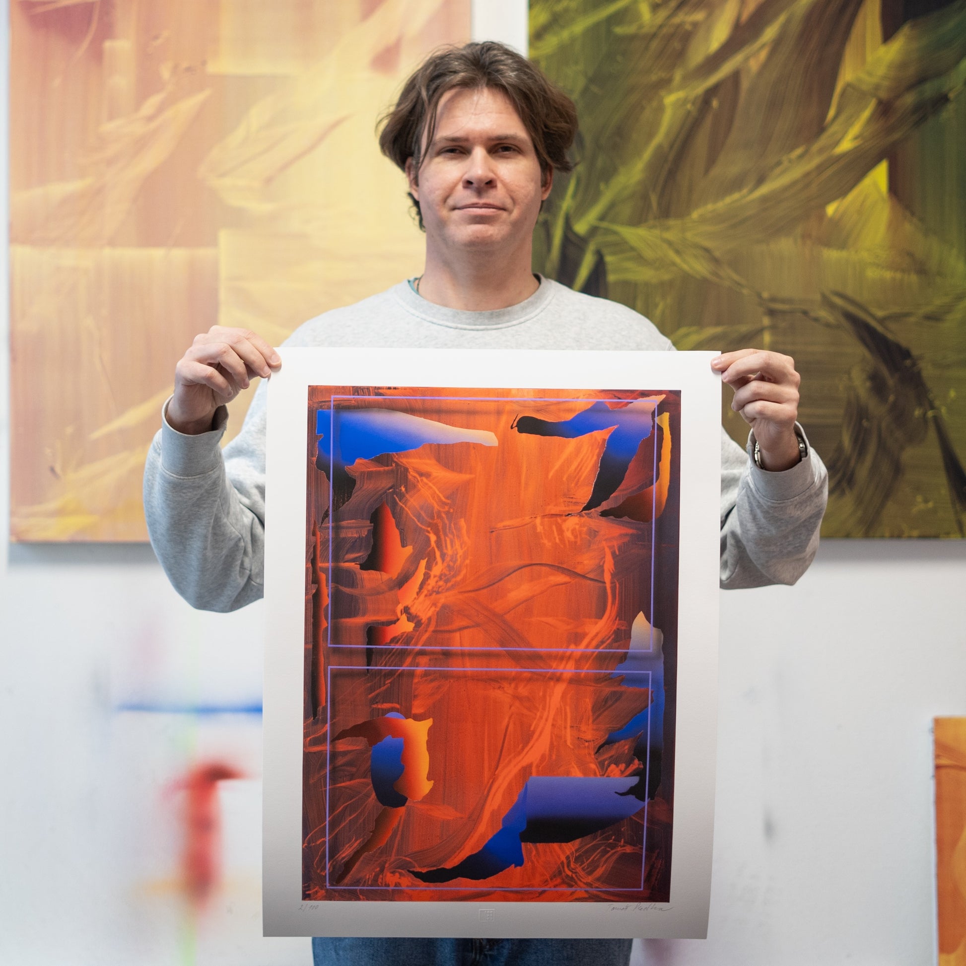 Laureát Ceny kritiky za mladou malbu a obraz ze série Ve stínu elipsy, kde se vrstvy, fragmenty a napětí malby koncentrují do jediného okamžiku. Limitovaná edice 100 ks, číslováno, podepsáno autorem.