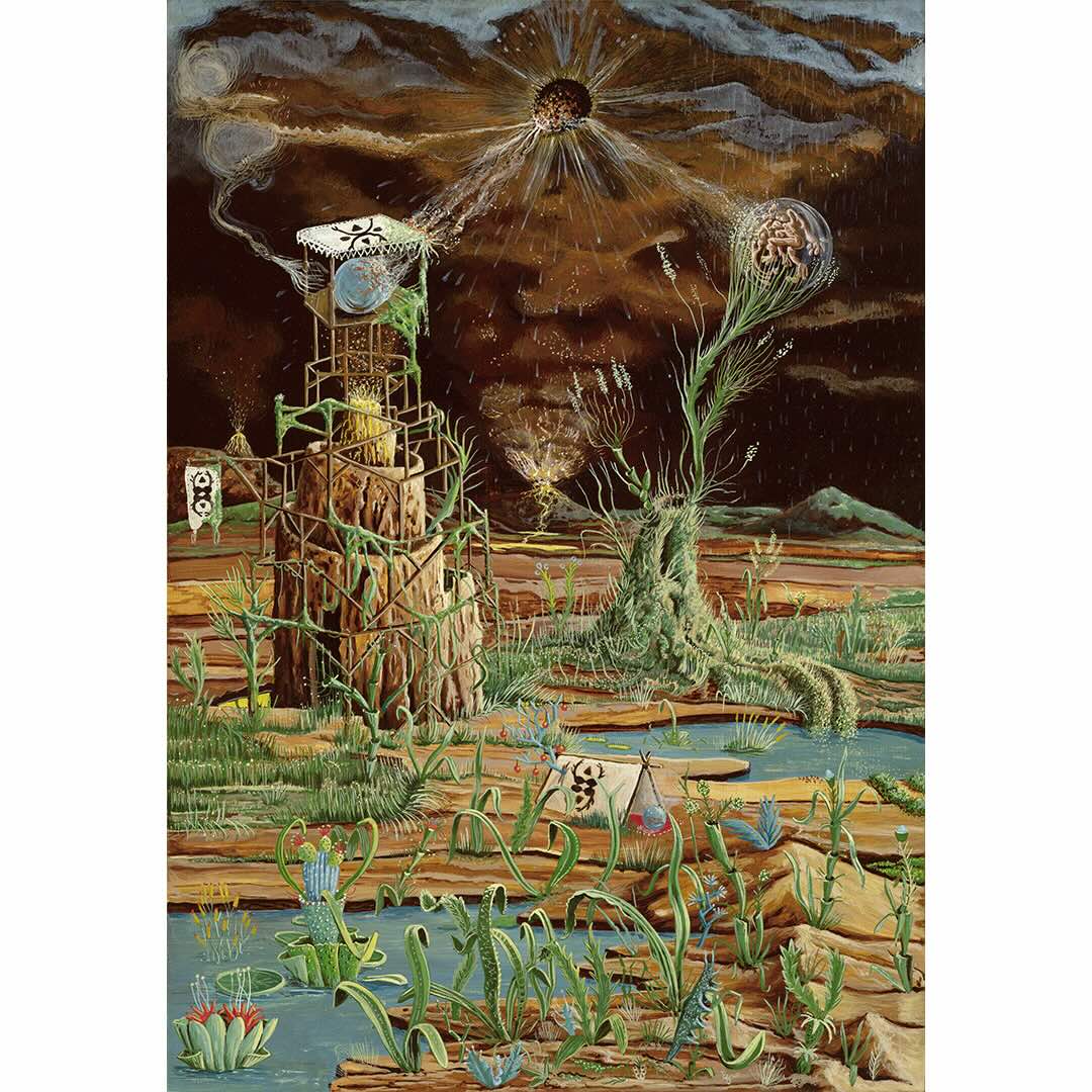 In its characteristic Tomasz bullet style, the bullet represents both the hypothetical end and the mythological beginning of the world. Referring to the history of landscape painting, it creates a vision that can express what many of us feel in connection with climate change and lack of answers to how to get out of this crisis. At the same time, the fantastic character of this depiction contains humor and surrealism.